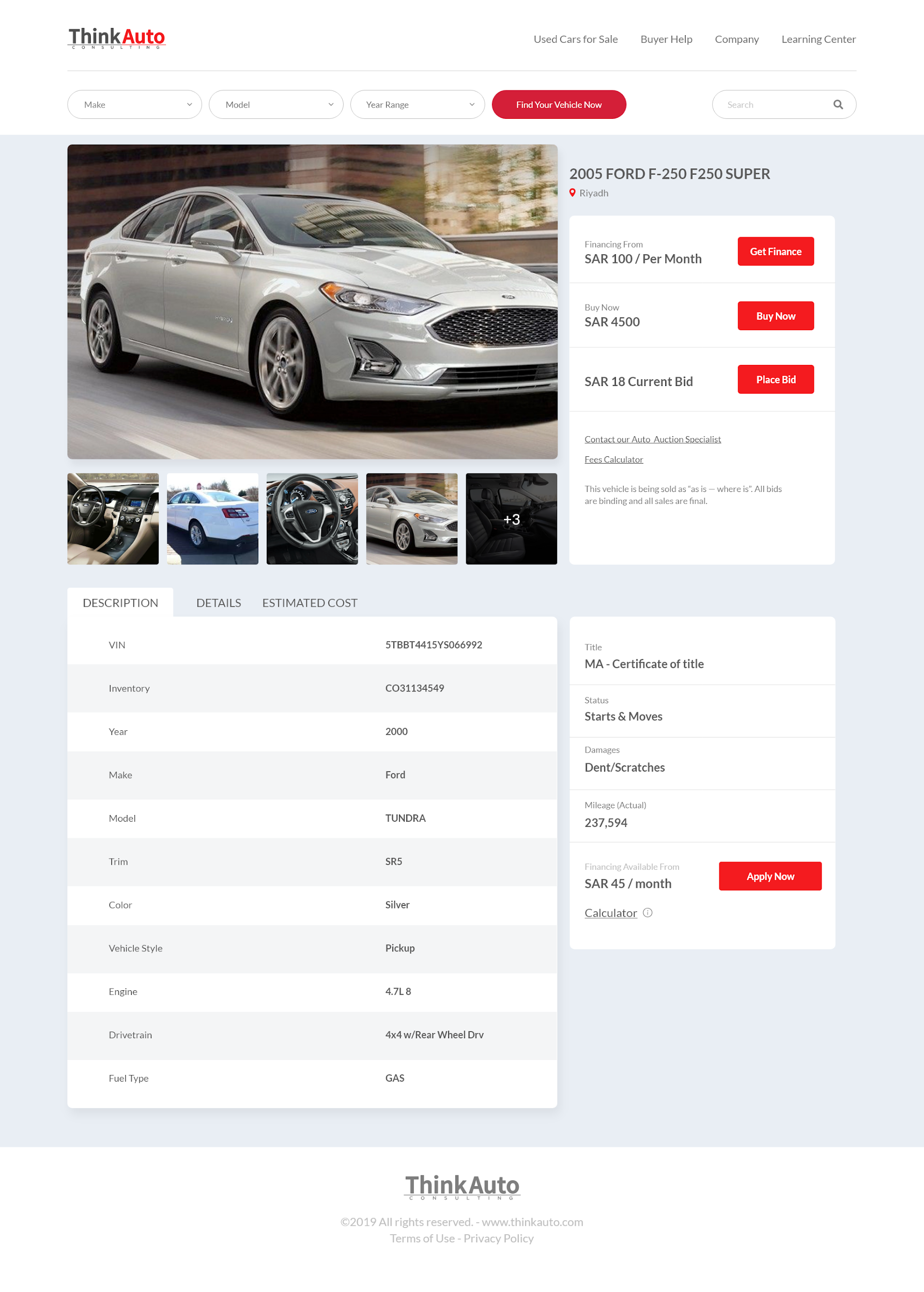 ThinkAuto required an independent solution for their Automax business that could manage their vehicle inventory, vehicle inspection report based on physical detailed inspection and evaluation of each part, vehicle listing to thinkAuto website. Social media platform integration and publishing the vehicles to social media and vehicle selling websites in kSA using RPA bots. This solution provided content enrichment and publishing of the data being managed in the backbone system of thinkAuto (developed by us). This system is called as dealer. management system. Besides that an android based application was developed for client’s technicians who can physically visit the car for inspection and enter the evaluation against each part in a smart designed interface. This application was developed for Android tablets. A mobile version (android and IOS) was developed for auctions to managed kicked off and manage.
