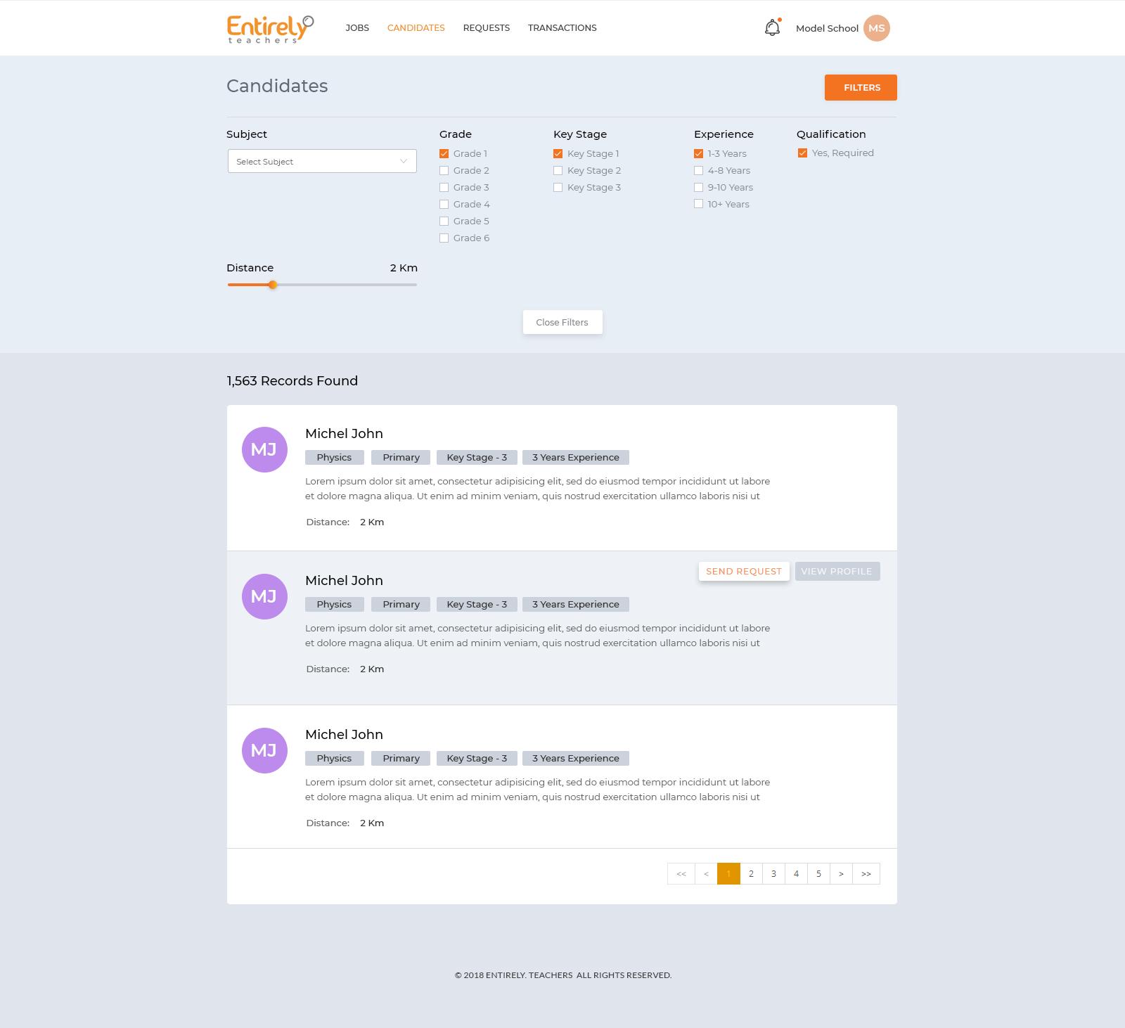 Entirely Teachers is Uber for Schools and Colleges. The application will allow schools anduniversities to search for substitute teachers in a specific area for short and long-termreplacement for different subjects. The teachers and schools/college registered in the portal are verified and approved by a system administrator. The idea is to link schools/college with teachers for physical teaching appointment for a period of time.The goal is to make it easy for the school/collegeusing ‘EntirelyTeachers’ app to find substitutes in the middle of the night or early in the morning when there is no time to waste